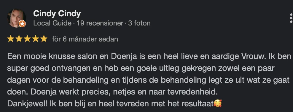Ik vind het geweldig om de blijdschap van mijn klanten te zien na een behandeling! Dat is wat me drijft, en alle leuke geschreven bedankjes.